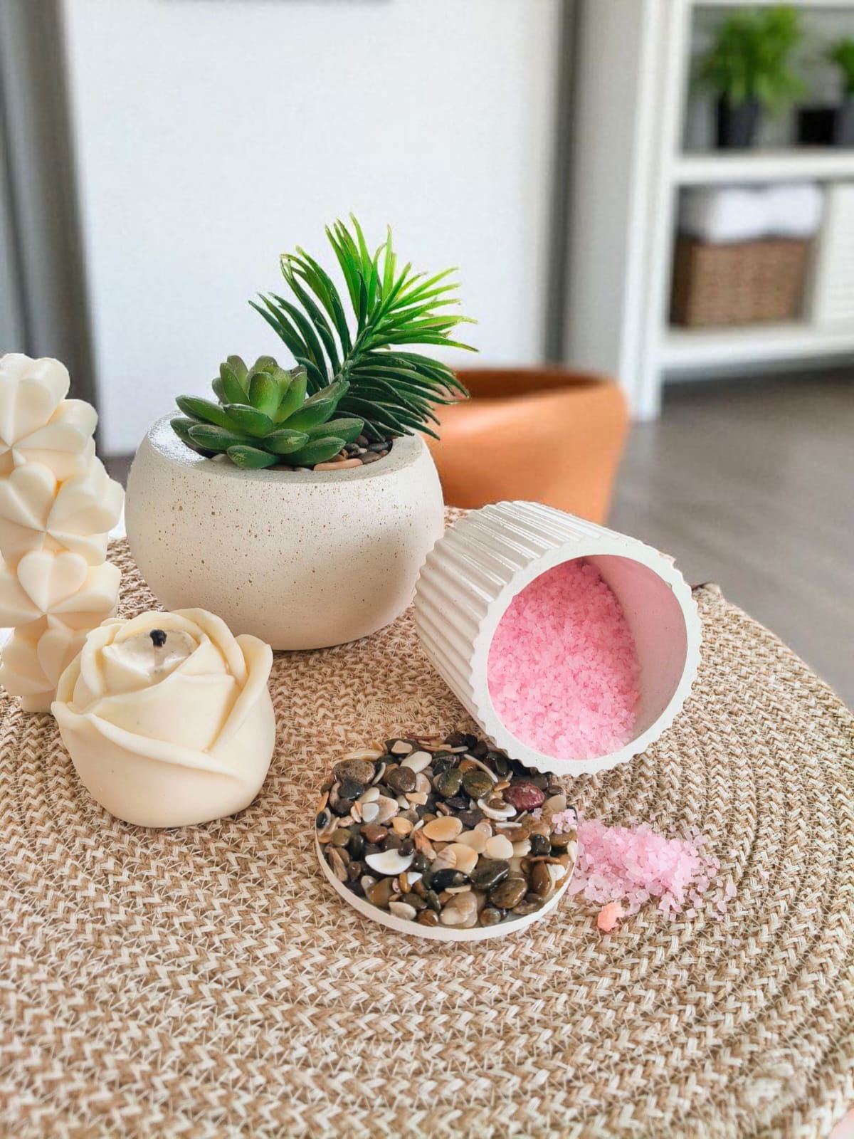 Alhajero c/tapa, realizado en cemento y marmolina. 100% artesanal.