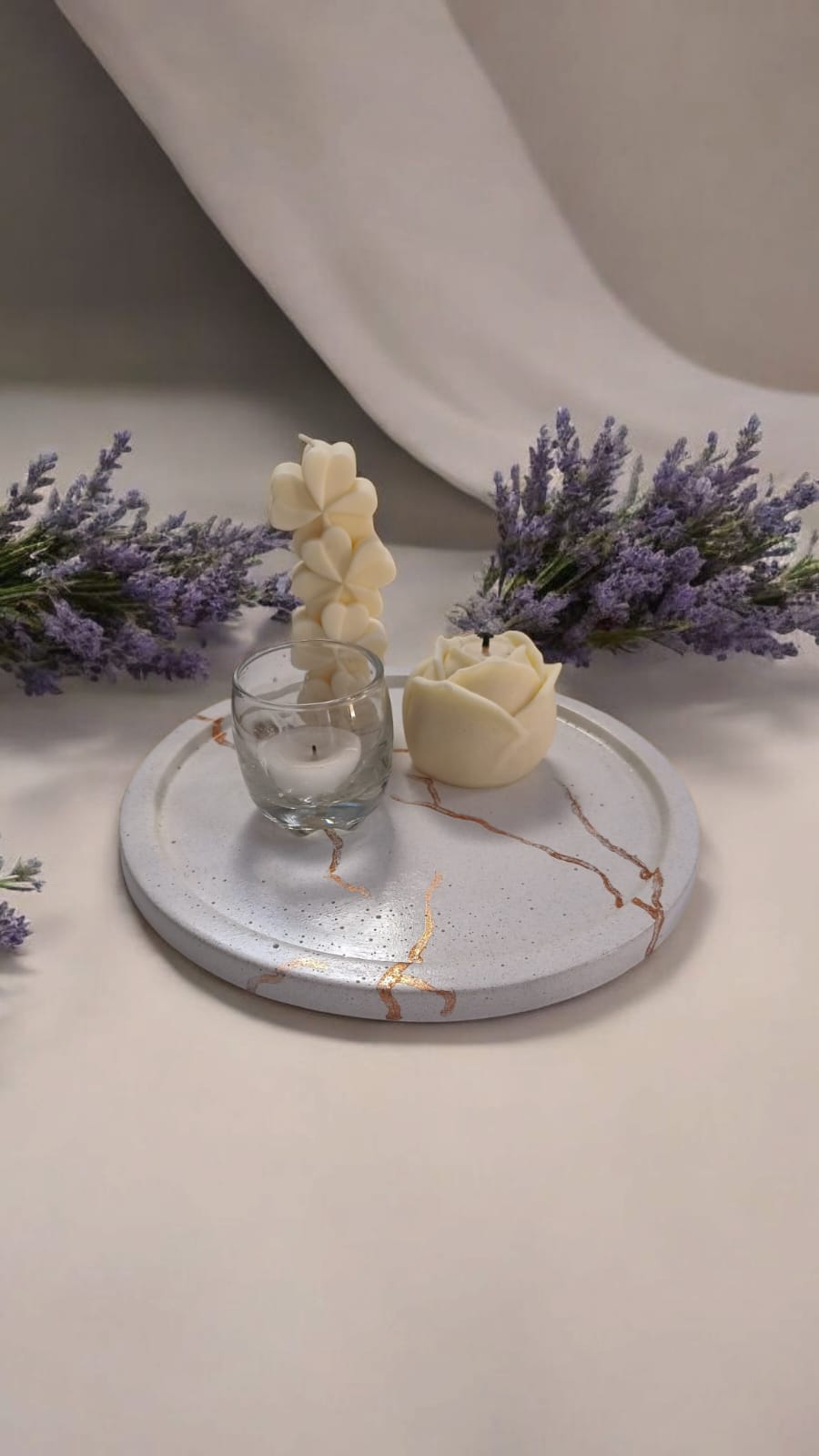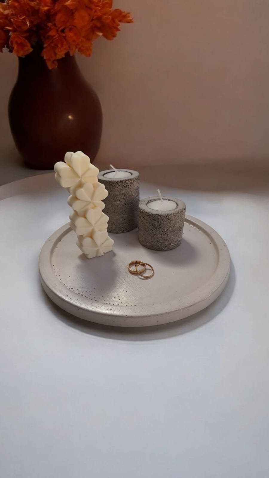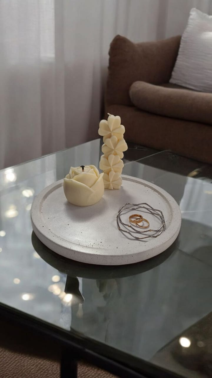 Bandeja circular de 22cm de diámetro, realizada en cemento y marmolina. 100% artesanal.