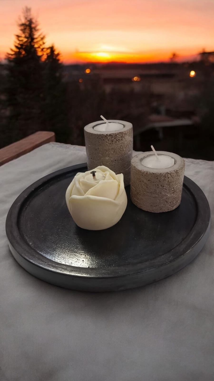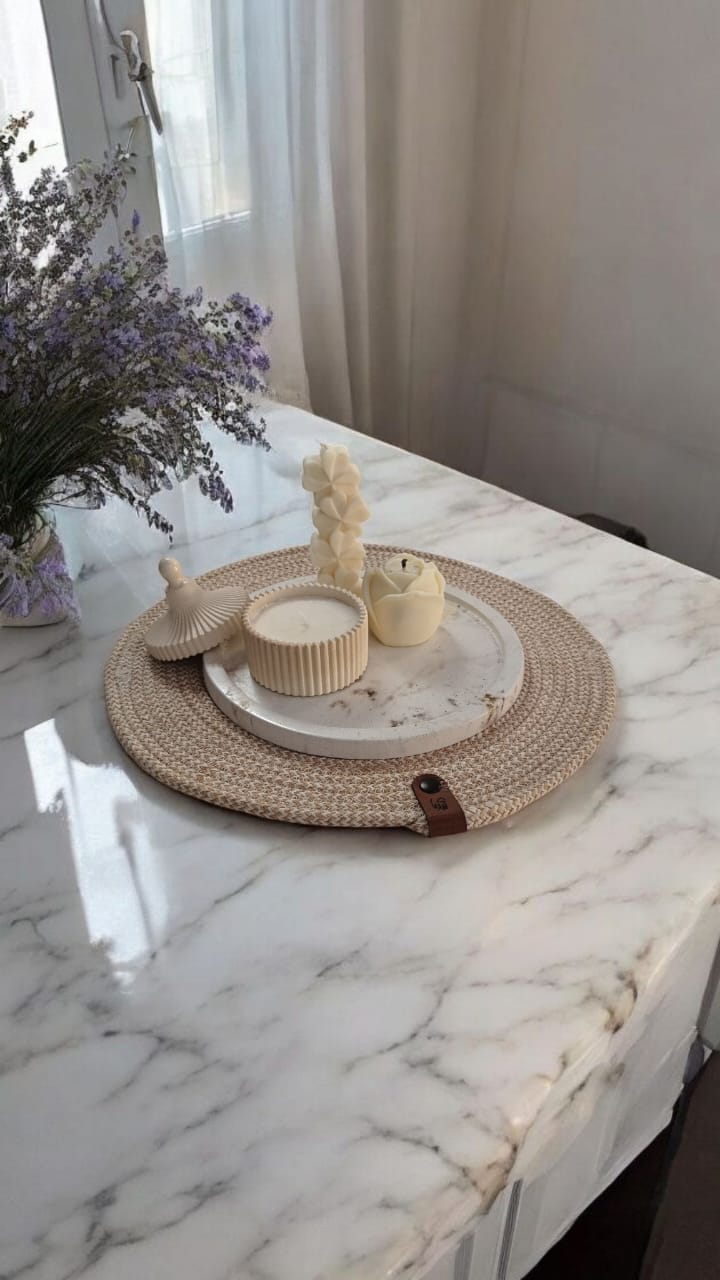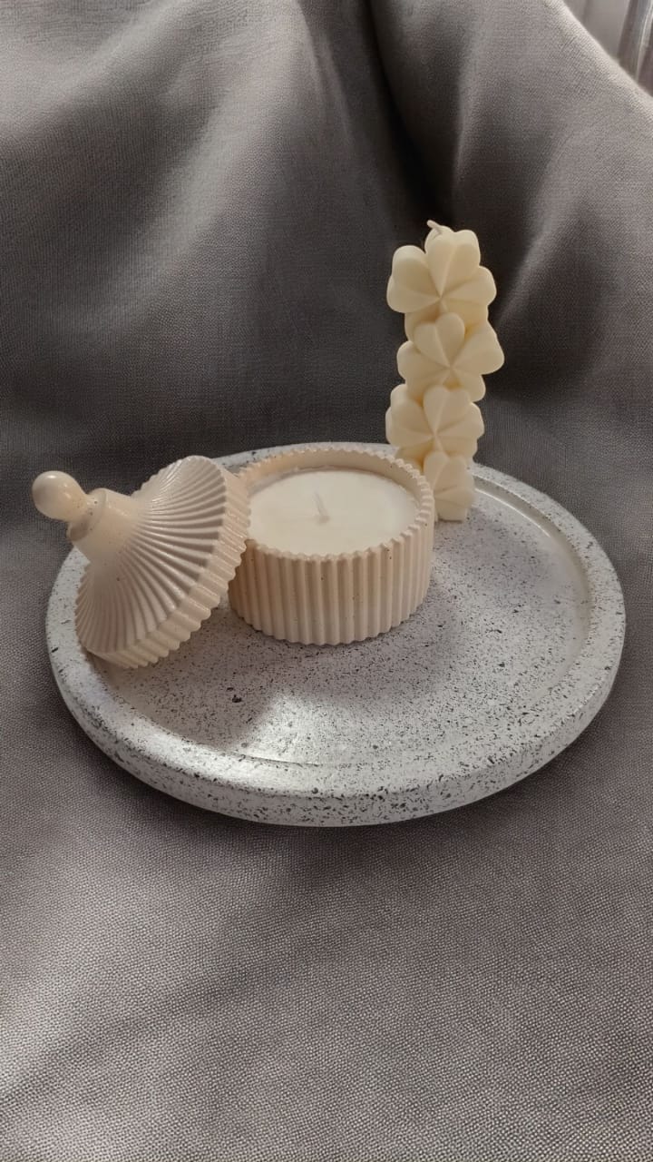 Bandeja circular de 22cm de diámetro, realizada en cemento y marmolina. 100% artesanal.