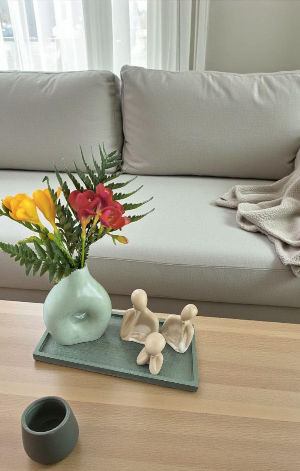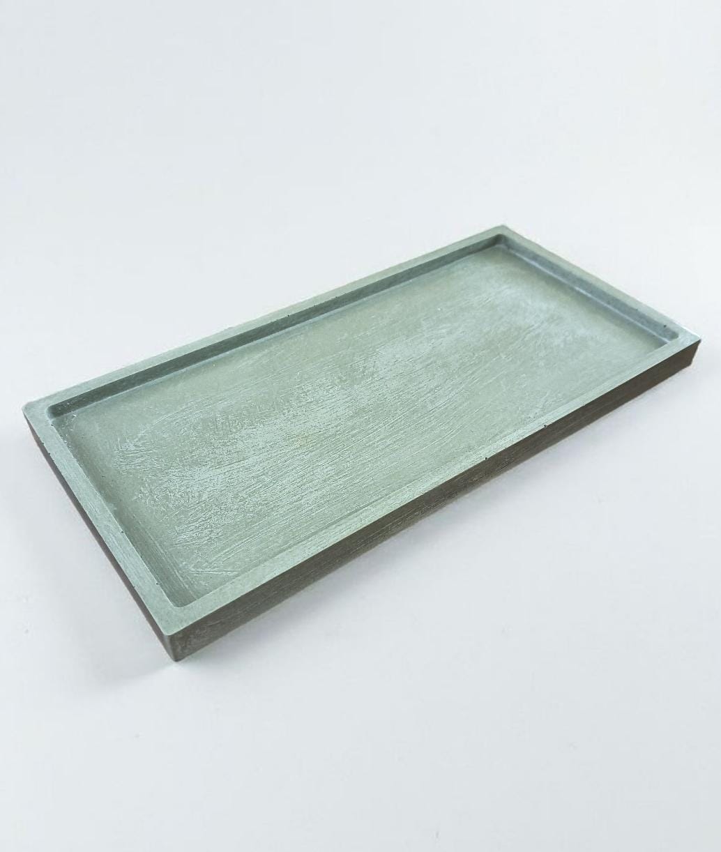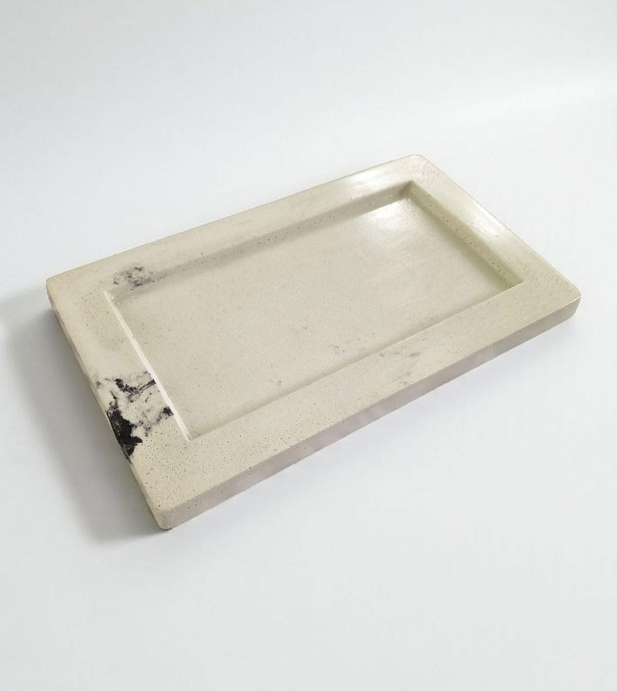 Bandeja rectangular de bordes anchos, realizada en cemento y marmolina. 100%artesanal.