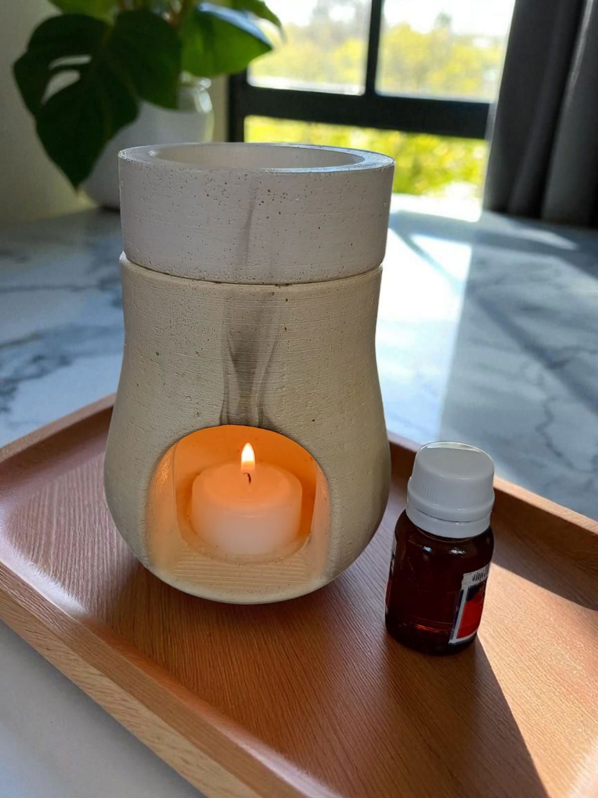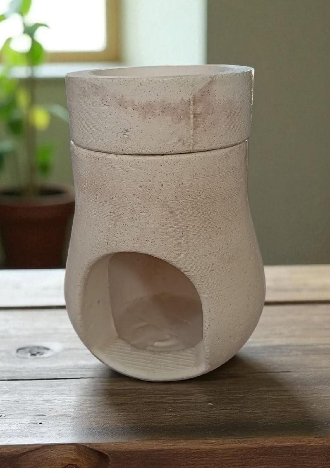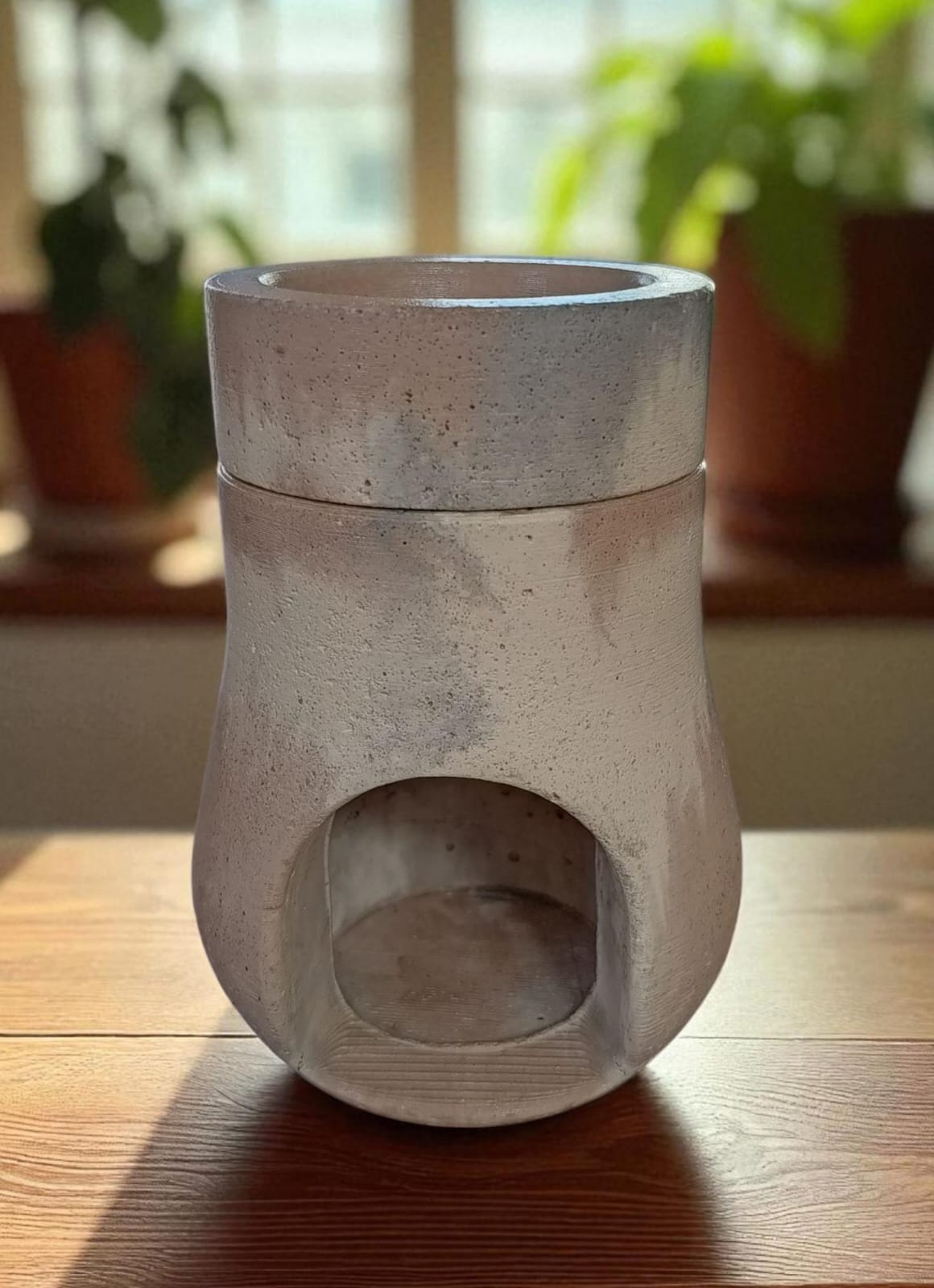 Hornito para esencias, realizado en cemento y marmolina. 100% artesanal.
