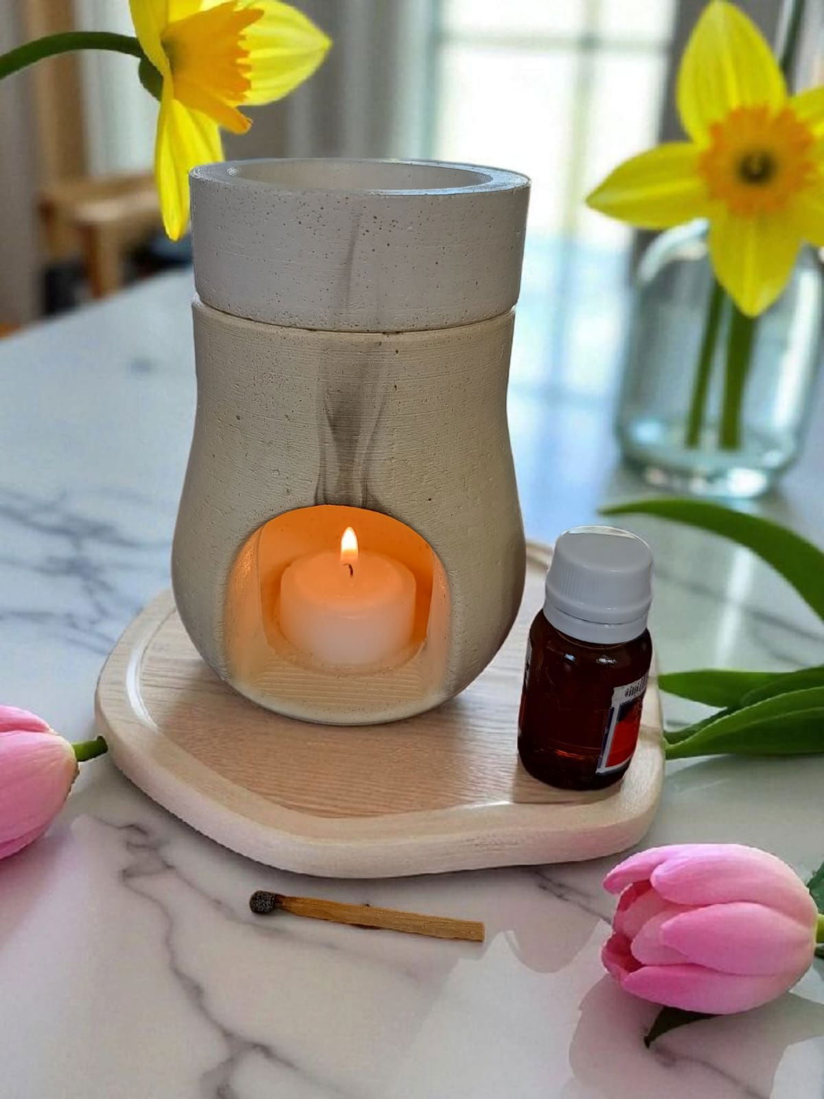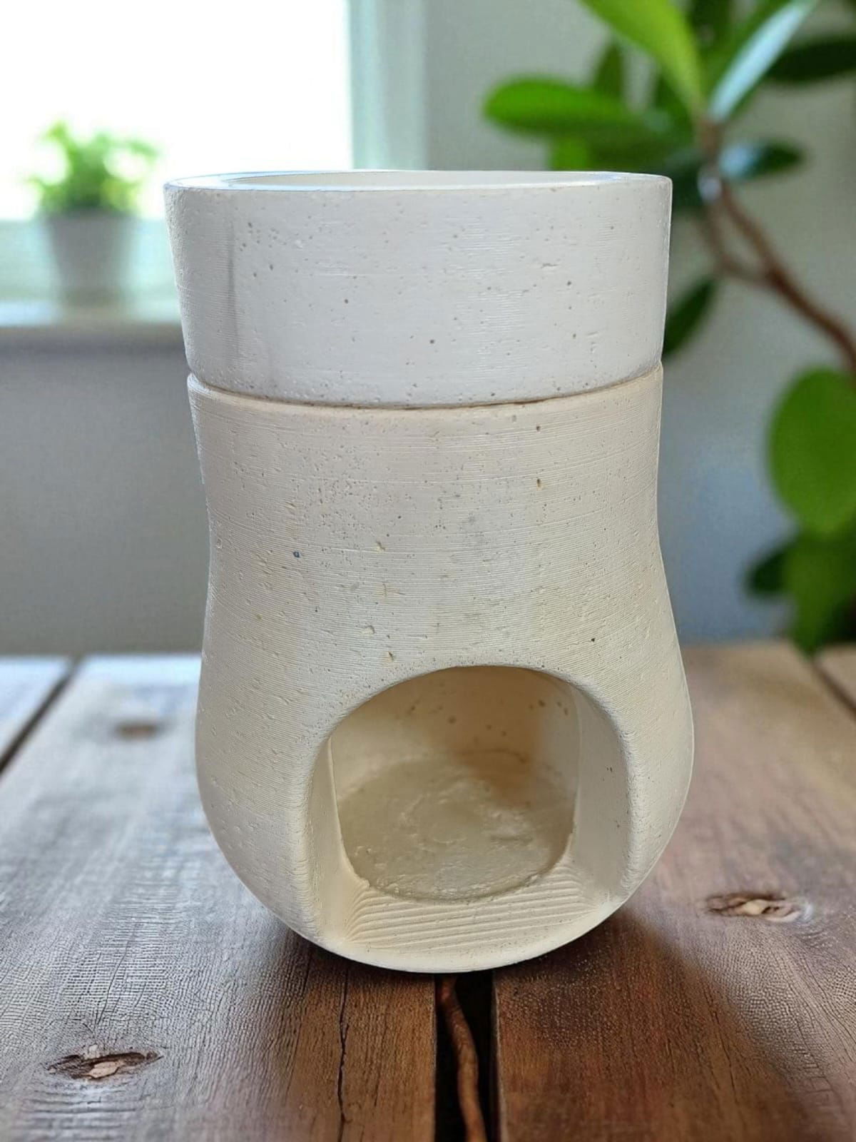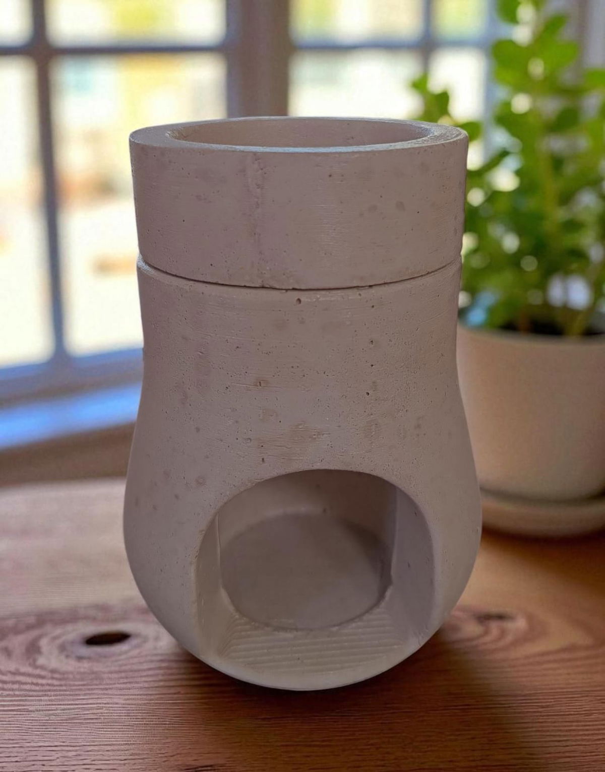 Hornito para esencias, realizado en cemento y marmolina. 100% artesanal.
