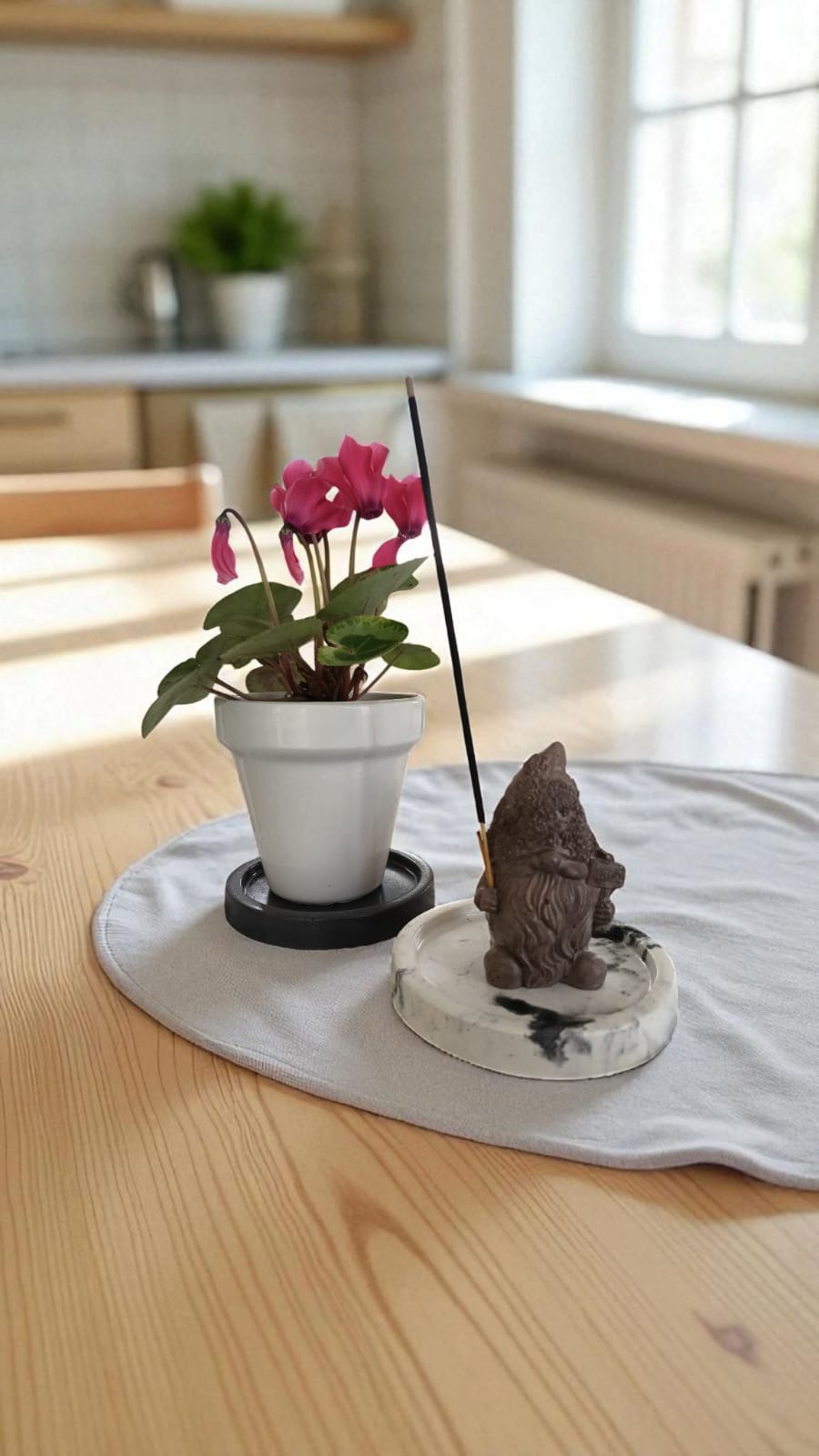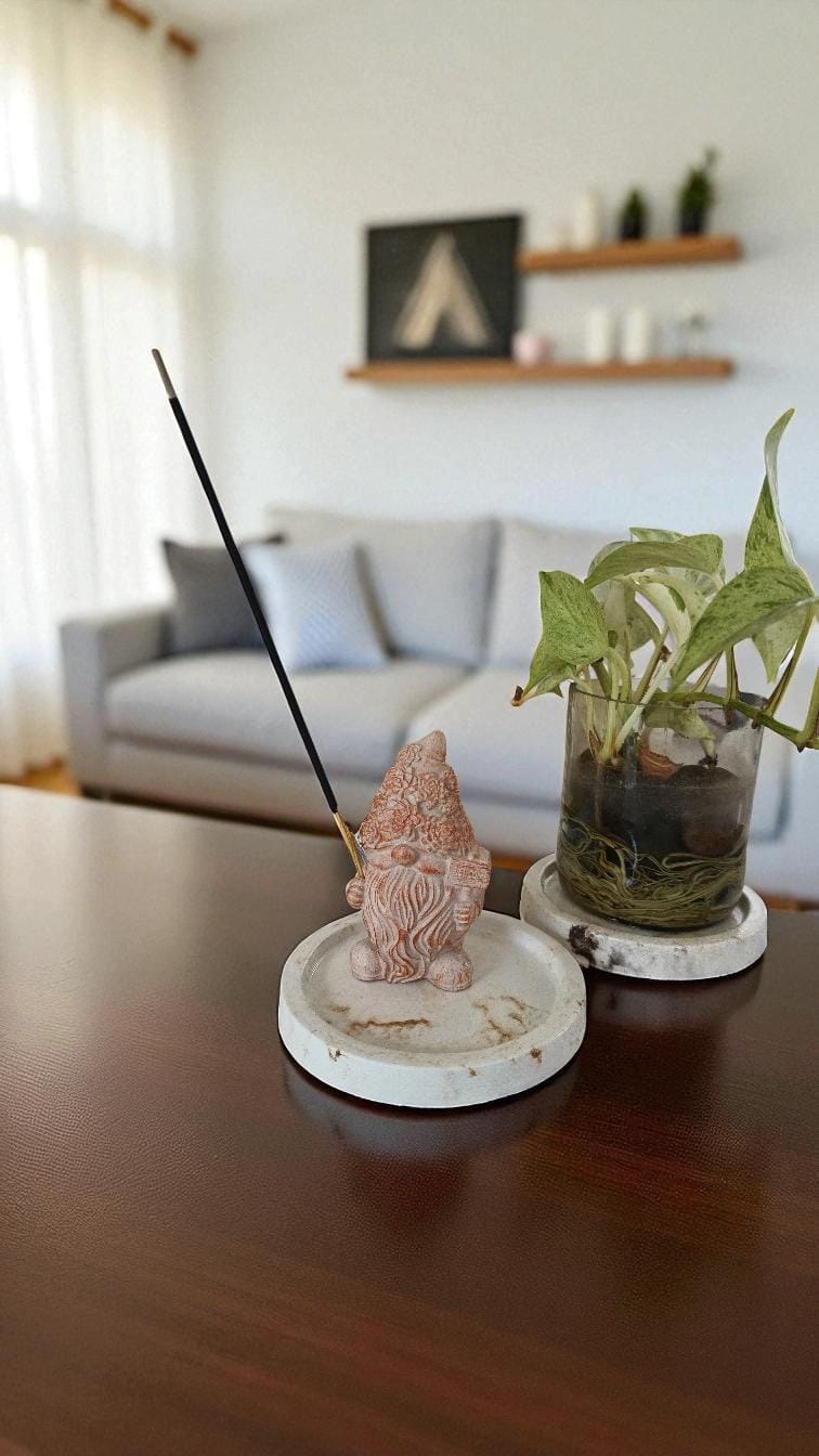 Porta sahumerio realizado en cemento y marmolina. 100% artesanal.