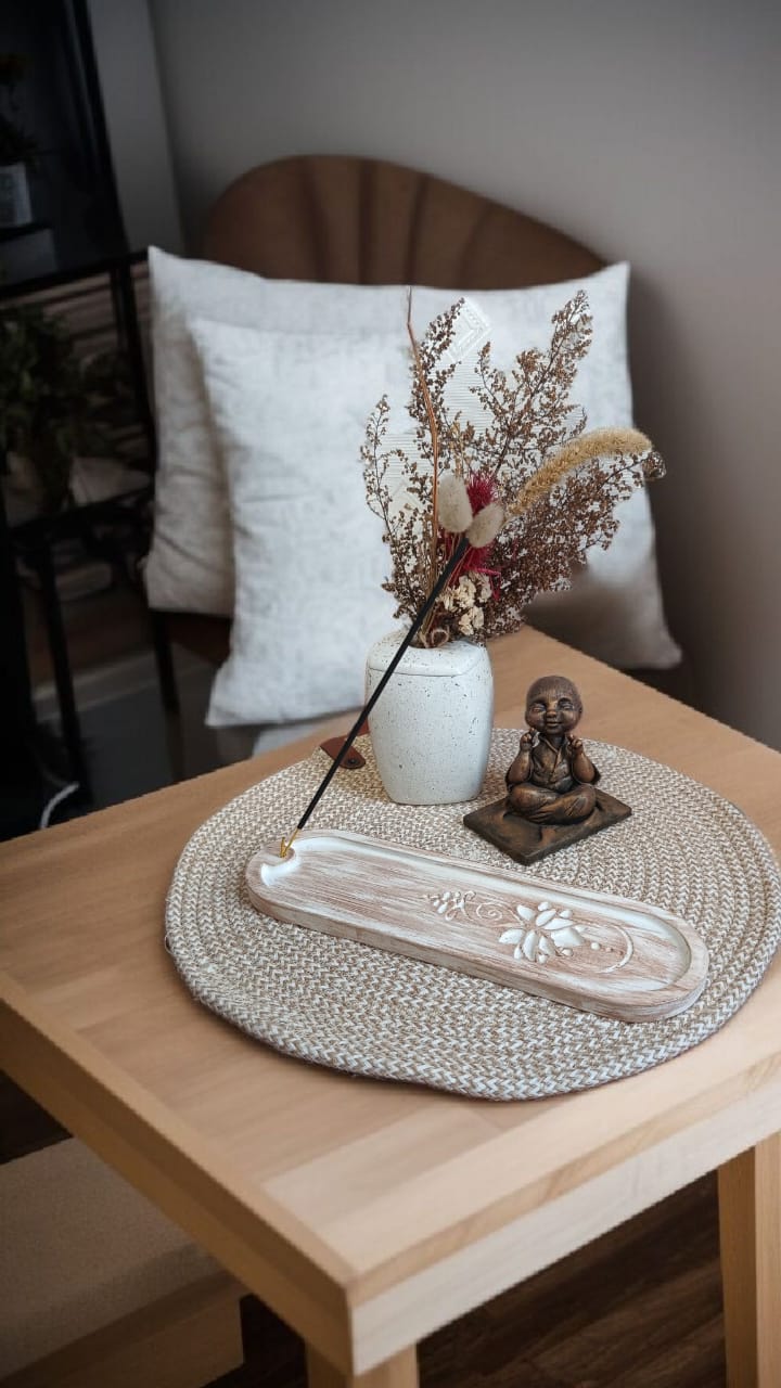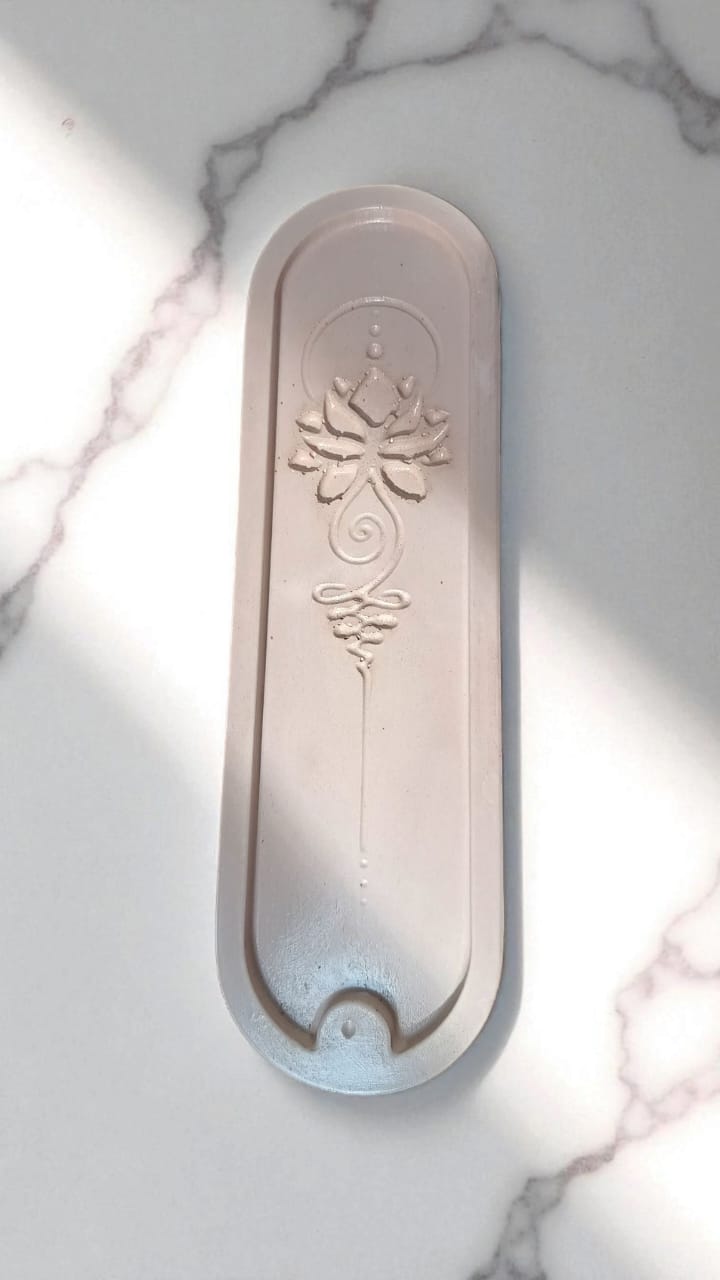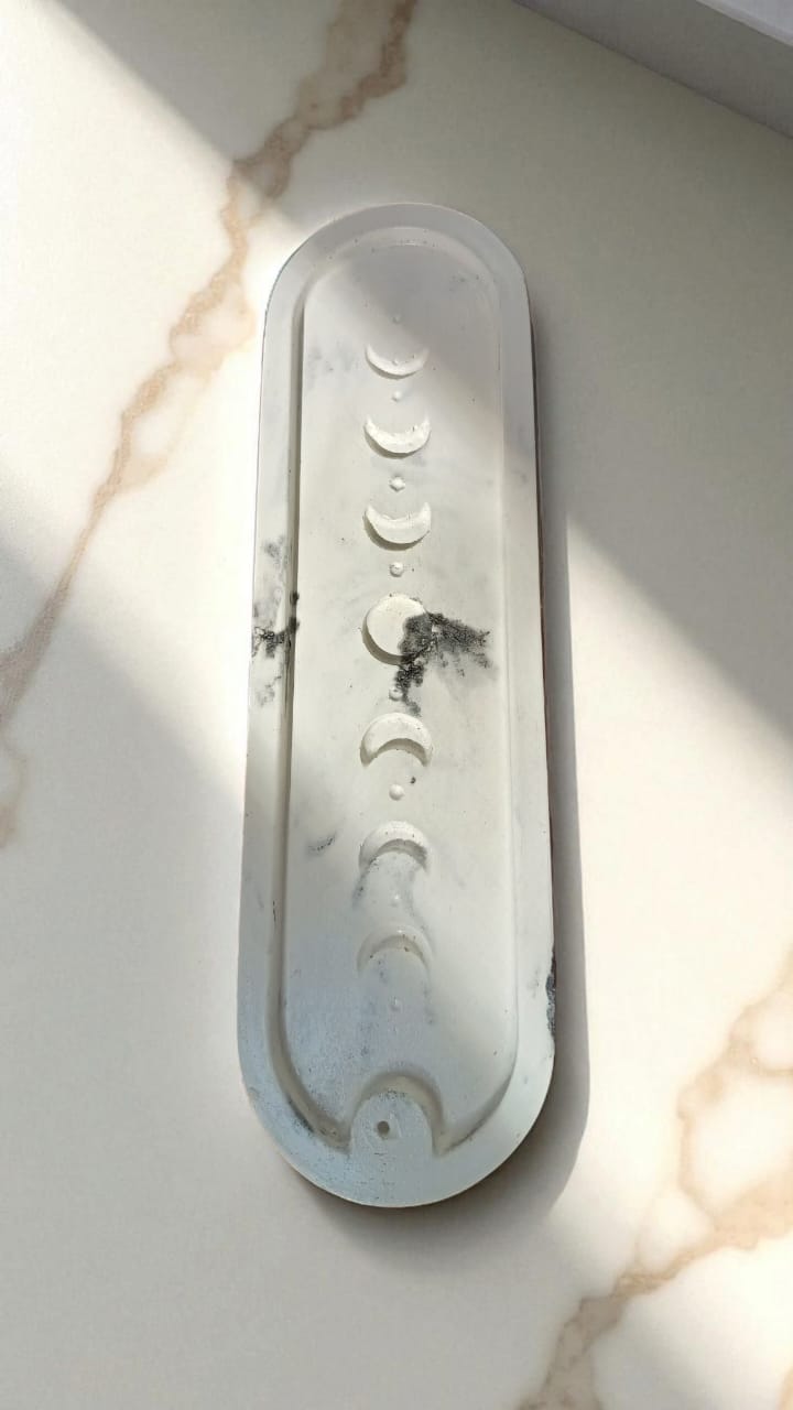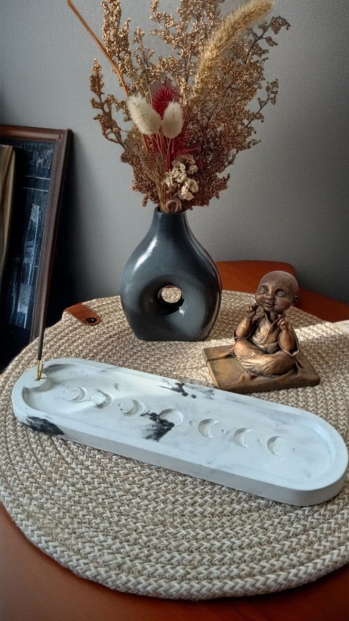 Porta sahumerio realizado en cemento y marmolina. 100% artesanal.