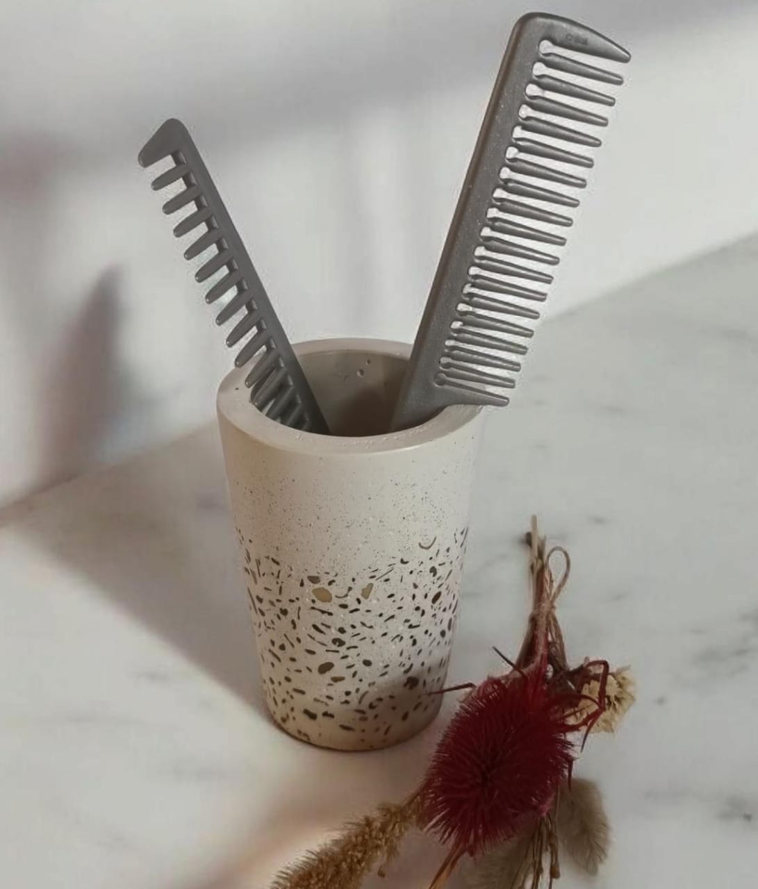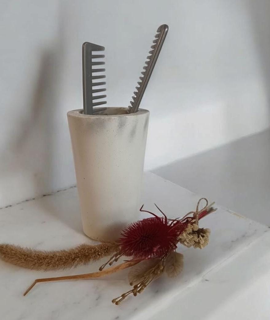 Vaso porta cepillos o peines. Realizado en cemento y marmolina. 100% artesanal.